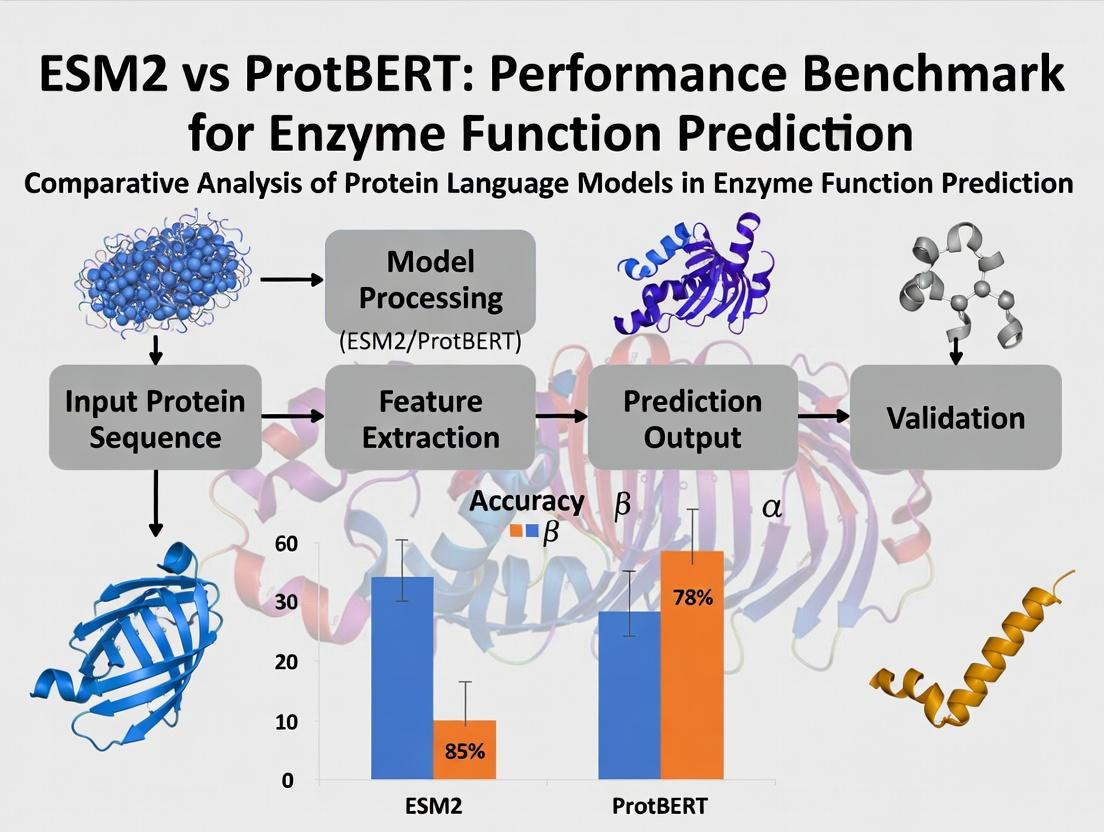 This article provides a comprehensive performance benchmark for two state-of-the-art protein language models, ESM-2 and ProtBERT, in predicting enzyme function.