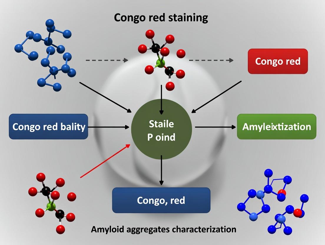 Congo Red staining remains an indispensable, cost-effective, and visually definitive technique for the initial identification of amyloid aggregates, anchored by its unique apple-green birefringence under polarized light. While foundational, its optimal use requires a deep understanding of its chemical basis, meticulous protocol execution, and awareness of its limitations. For rigorous research and drug development, Congo Red should be viewed as the first step in a multi-modal validation strategy, ideally combined with immunohistochemistry for subtype specificity and biophysical methods for quantitative analysis. Future directions involve standardizing quantitative digital pathology approaches for Congo Red analysis and integrating it with cutting-edge structural biology techniques to further elucidate the pathogenic mechanisms of amyloidosis and accelerate the development of targeted therapies.